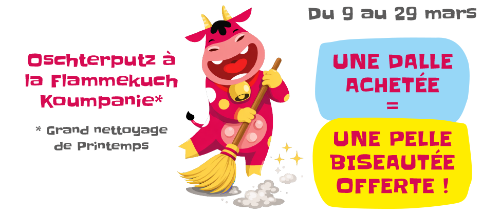 Offre valable une seule fois par commande sur le site flammekuch.com ou dans notre boutique (91B Route des Romains à Strasbourg) jusqu’au 29 mars 23h59 !
